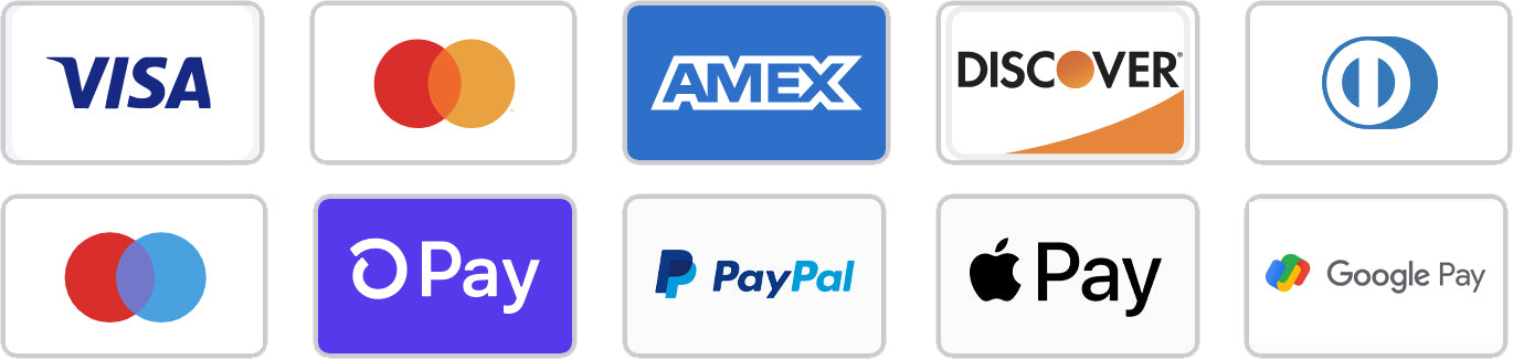 Visa, Mastercard, PayPal, Apple Pay, Google Pay.